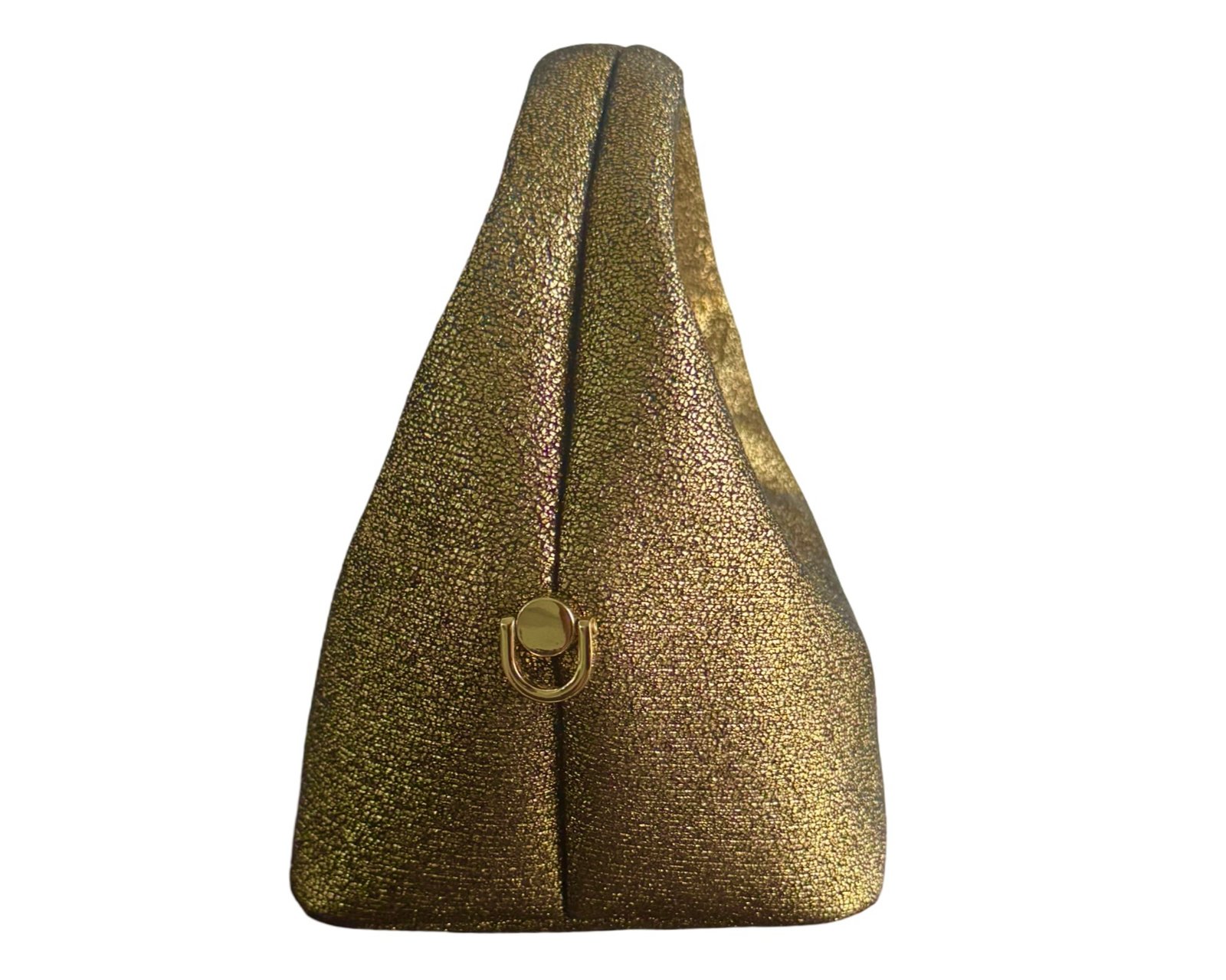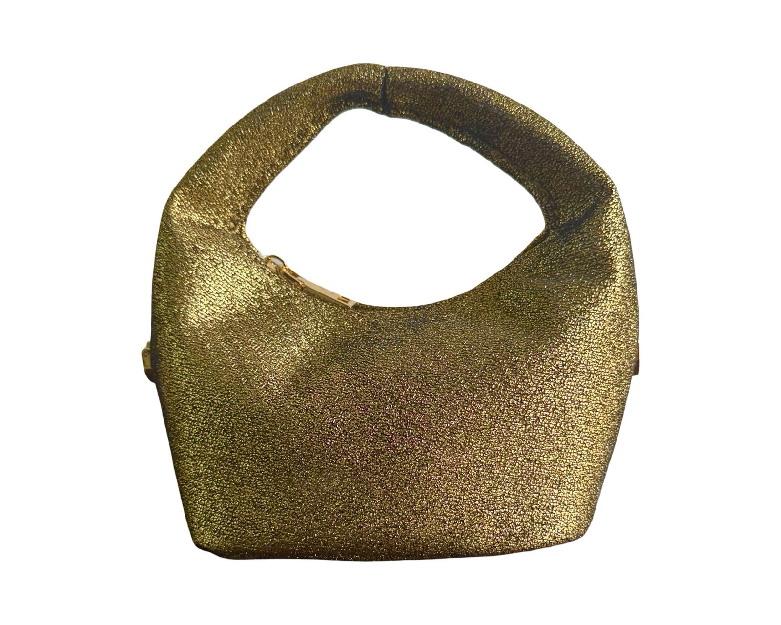 - Exterior: pouch shaped , leather twined in chain strap, side rings for detachable straps , zip for closure .